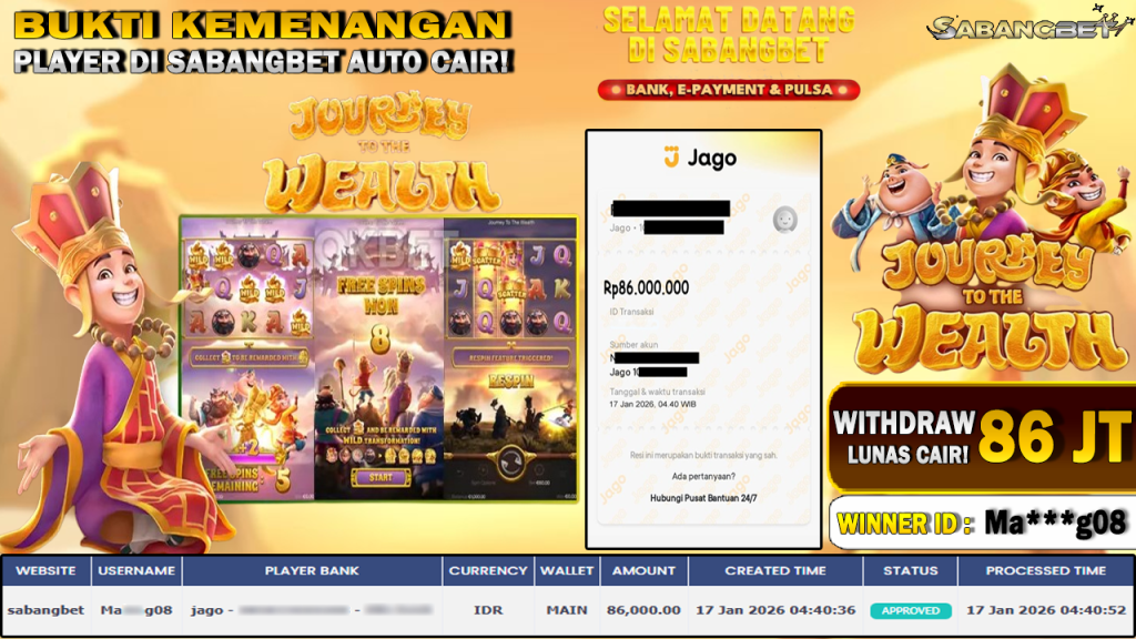 BUKTI KEMENANGAN 17 JANUARI 2026 DI GAME JOURNEY TO THE WEALTH WD 86 JUTA