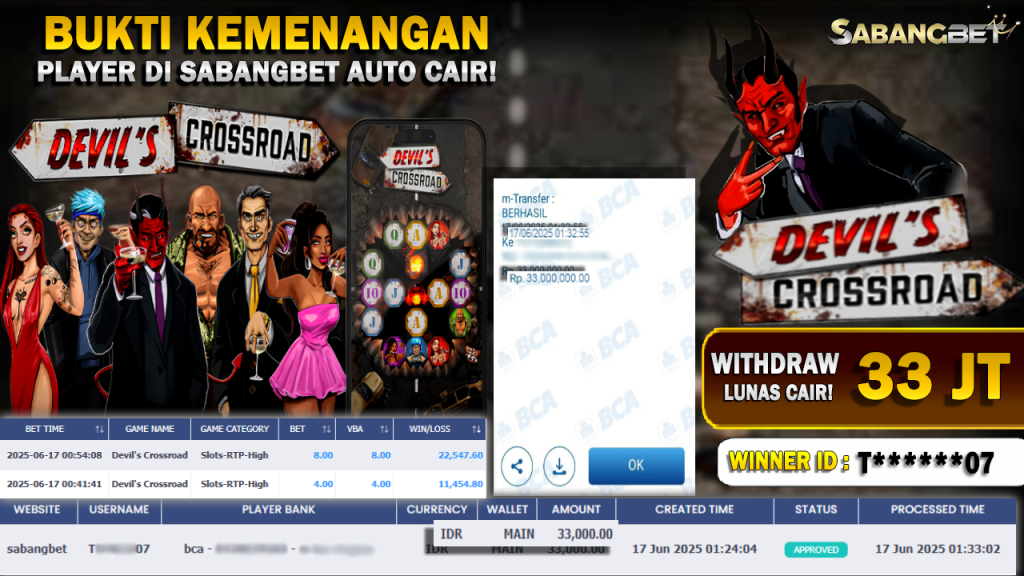 BUKTI KEMENANGAN 17 JUNI 2025 DI GAME DEVIL’S CROSSROAD WD 33 JUTA