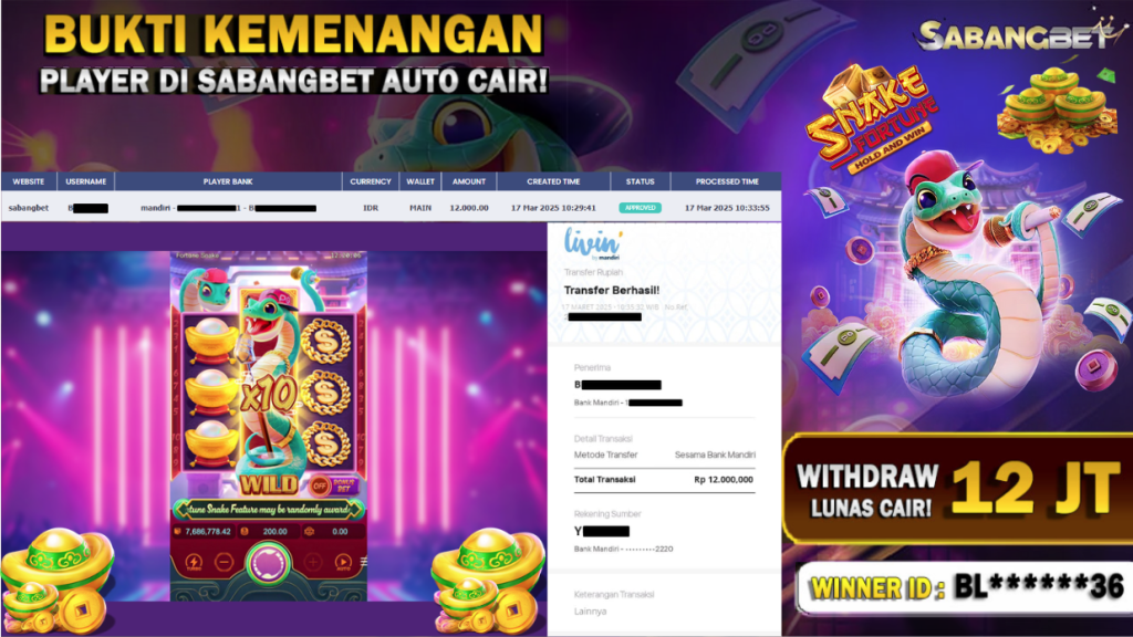 BUKTI KEMENANGAN 17 MARET 2025 DI GAME FORTUNE SNACK WD 12 JT