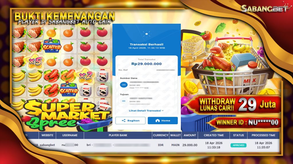 BUKTI KEMENANGAN 18 APRIL 2026 DI GAME SUPERMARKET SPREE WD 29 JUTA