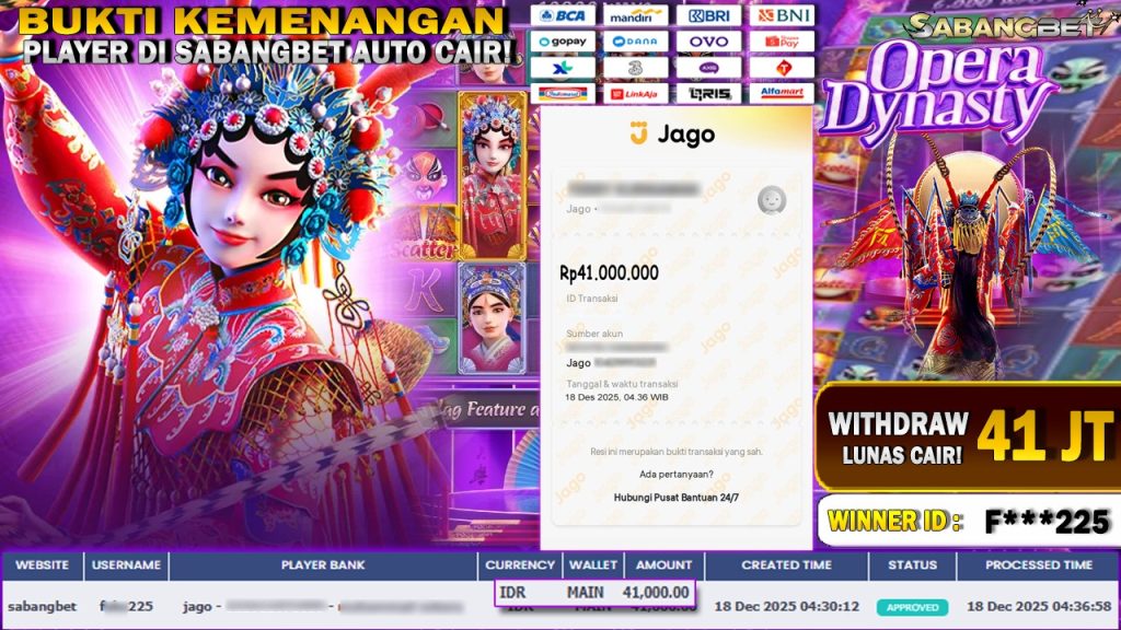 BUKTI KEMENANGAN 18 DESEMBER 2025 DI GAME OPERA DYNASTY WD 41 JUTA