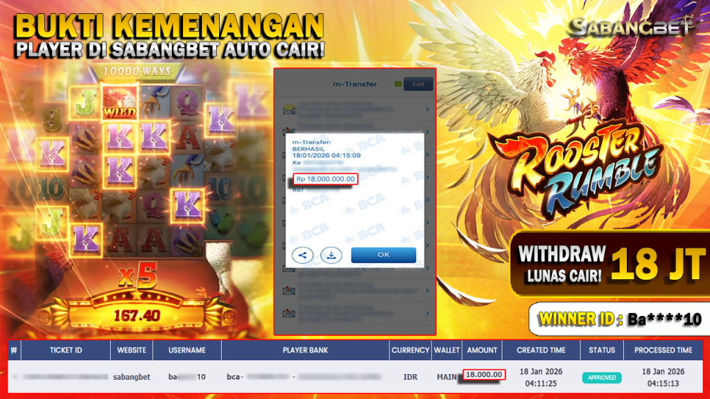 BUKTI KEMENANGAN 18 JANUARI 2026 DI GAME Rooster Rumble WD 18 JUTA