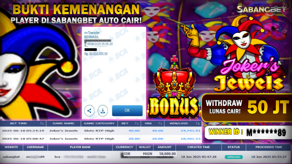 BUKTI KEMENANGAN 18 JUNI 2025 DI GAME JOKER’S JEWELS WD 50 JUTA