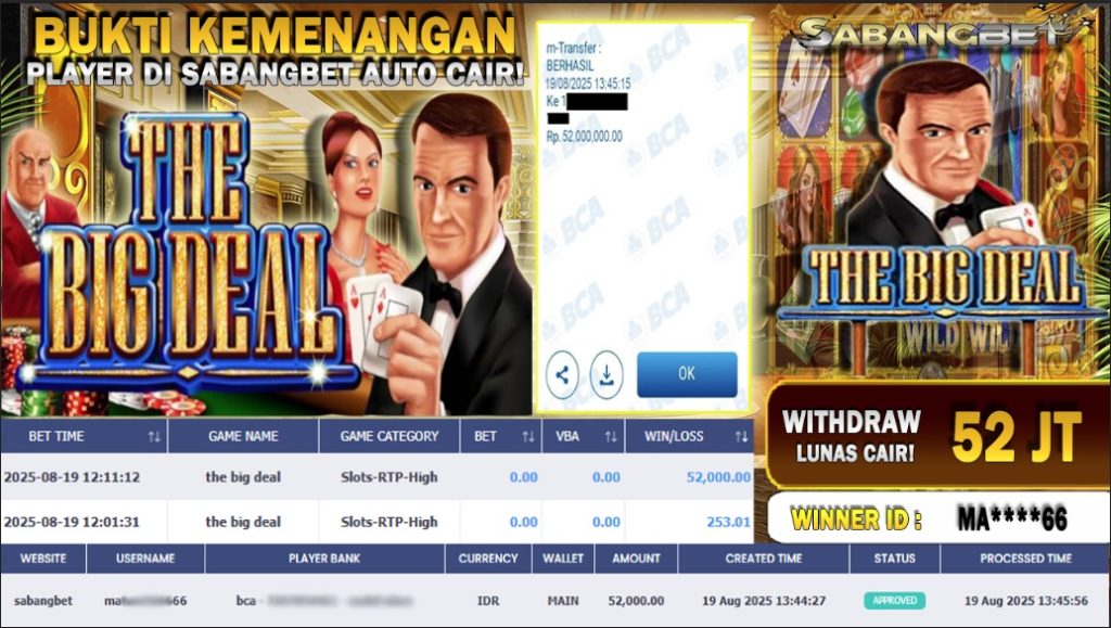 BUKTI KEMENANGAN 19 AGUSTUS 2025 DI GAME THE BIG DEAL WD 52 JUTA