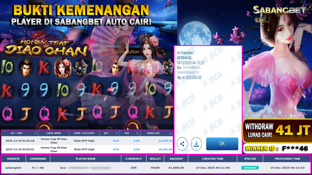 BUKTI KEMENANGAN 19 DESEMBER 2025 DI GAME HONEY TRAP OF DIAO CHAN WD 41 JUTA