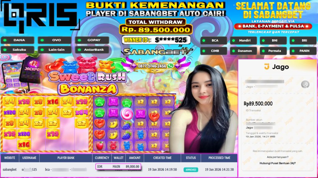 BUKTI KEMENANGAN 19 JANUARI 2026 DI GAME SWEET RUSH BONANZA WD 89,5 JUTA