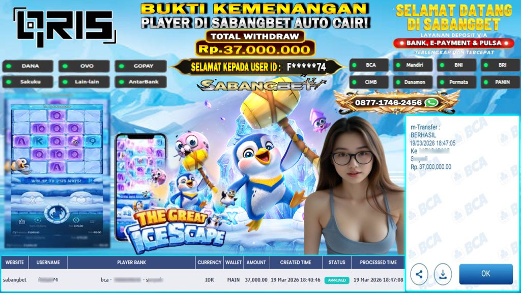 BUKTI KEMENANGAN 19 MARET 2026 DI GAME THE GREAT ICESCAPE WD 37 JUTA