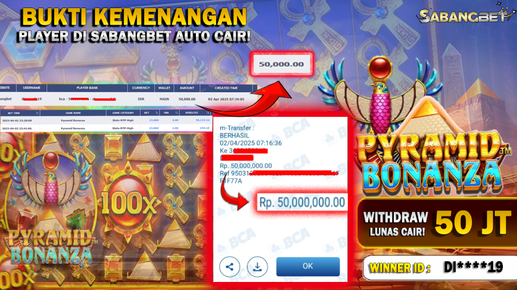 BUKTI KEMENANGAN 2 APRIL 2025 DI PYRAMID BONANZA TIGER WD 50 JUTA