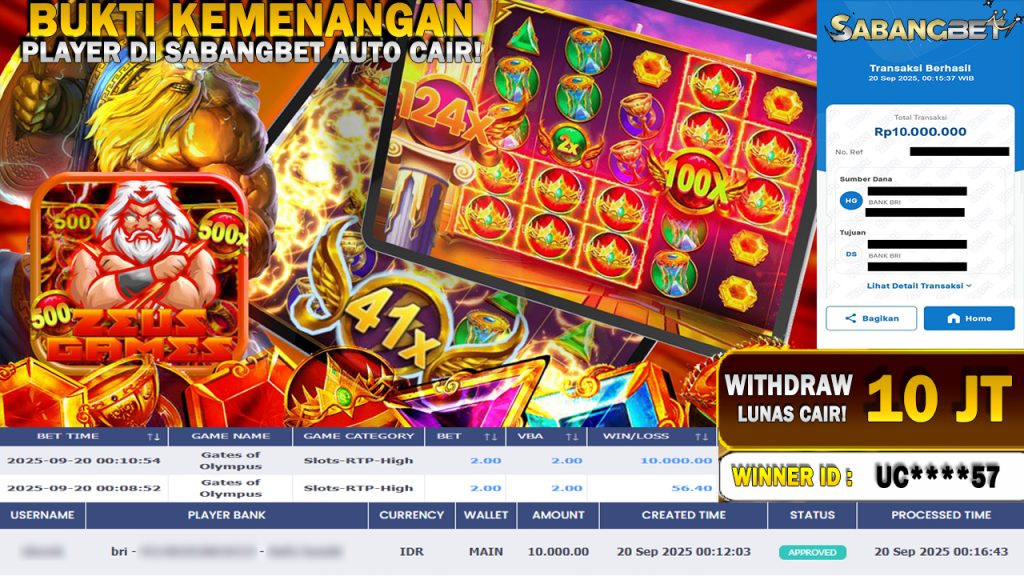BUKTI KEMENANGAN 20 SEPTEMBER 2025 DI GAME gates of olympus WD 10 JUTA