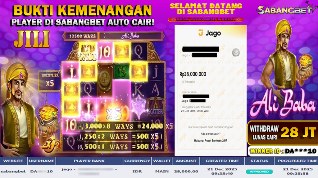 BUKTI KEMENANGAN 21 DESEMBER 2025 DI GAME ALI BABA WD 28 JUTA
