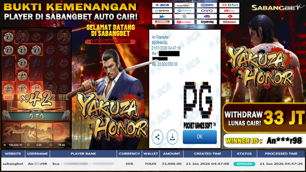 BUKTI KEMENANGAN 21 JANUARI 2026 DI GAME YAKUZA HONOR WD 33 JUTA