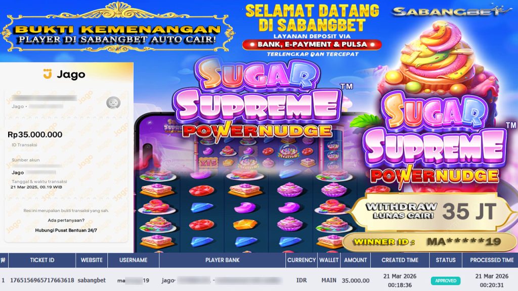 BUKTI KEMENANGAN 21 MARET 2026 DI GAME SUGAR SUPREME POWERNUDGE™ WD 35 JUTA