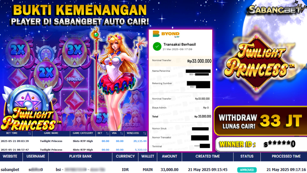 BUKTI KEMENANGAN 21 MEI 2025 DI GAME TWILIGHT PRINCESS WD 33 JUTA