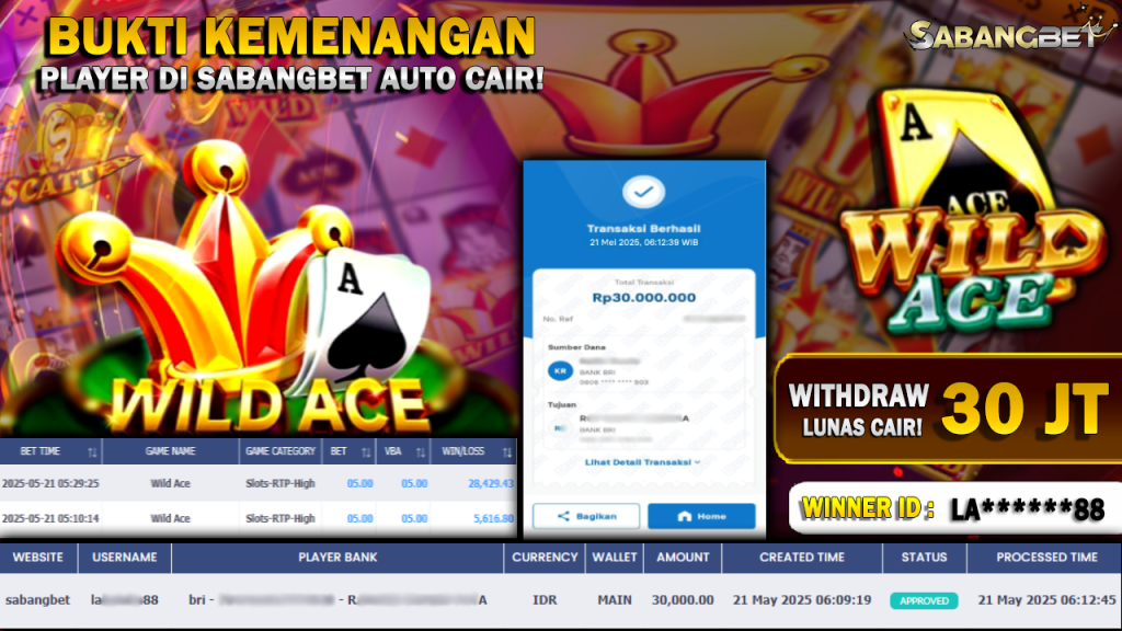 BUKTI KEMENANGAN 21 MEI 2025 DI GAME WILD ACE WD 30 JUTA