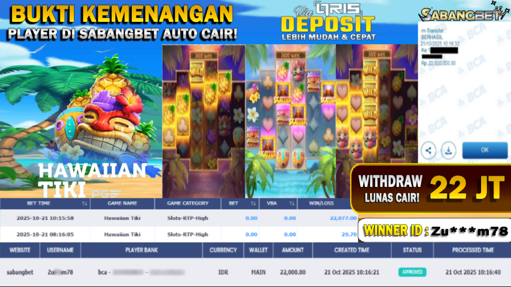 BUKTI KEMENANGAN 21 OKTOBER 2025 DI GAME HAWAIIAN TIKI WD 22 JUTA