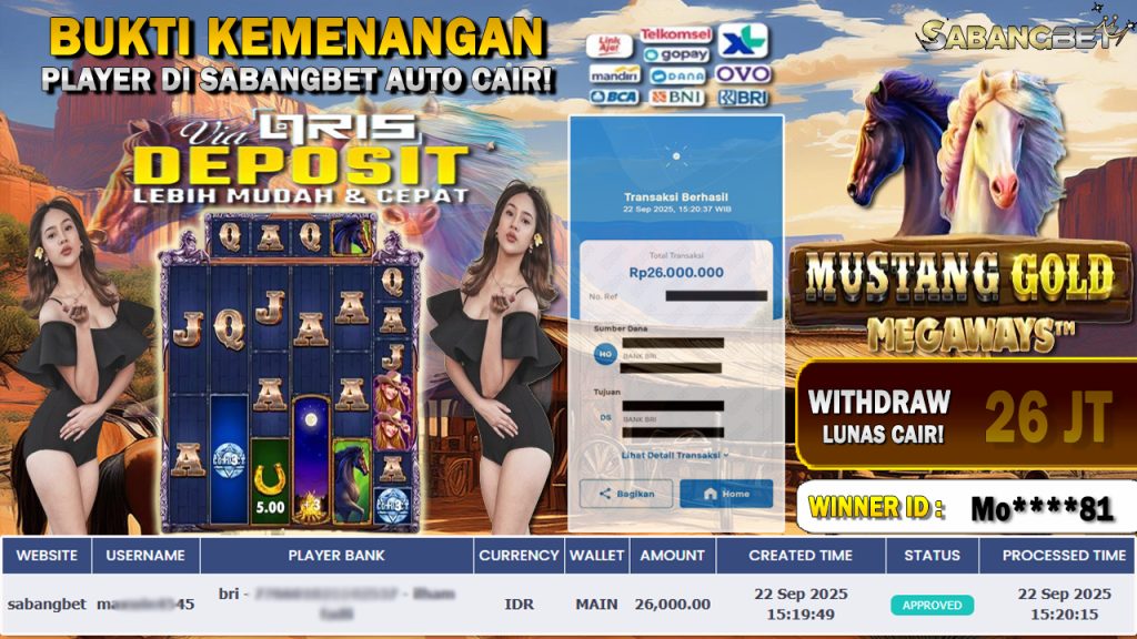 BUKTI KEMENANGAN 22 SEPTEMBER 2025 DI GAME MUSTANG GOLD MEGAWAYS WD 26 JUTA