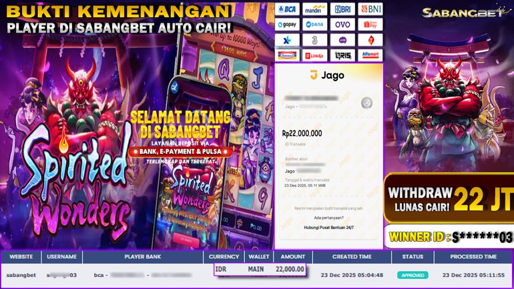 BUKTI KEMENANGAN 23 DESEMBER 2025 DI GAME SPIRITED WONDERS WD 22 JUTA