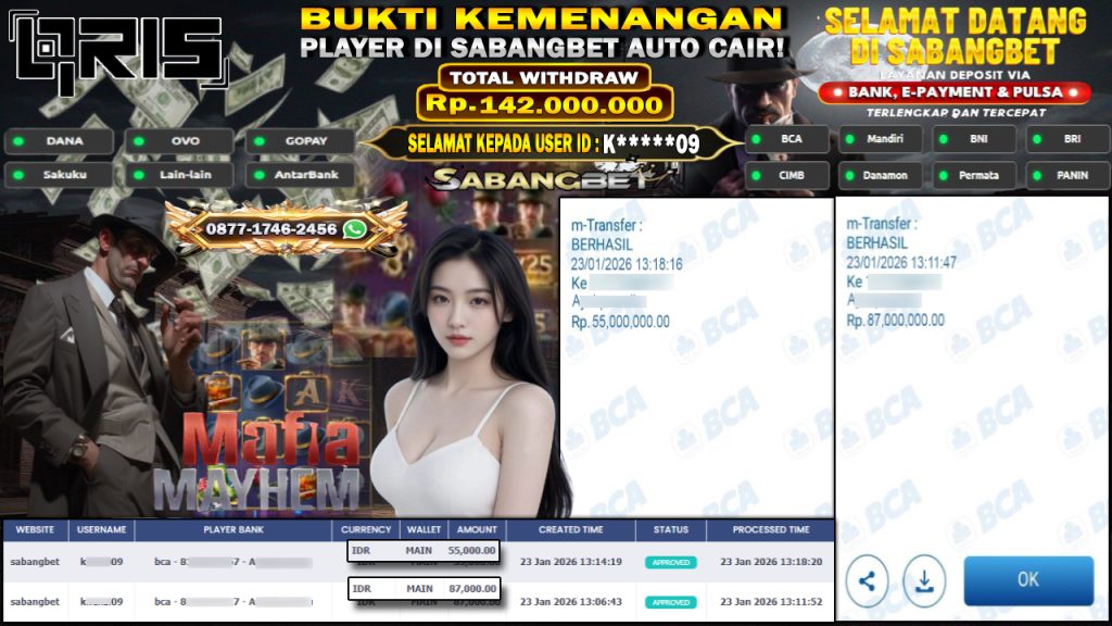 BUKTI KEMENANGAN 23 JANUARI 2026 DI GAME MAFIA MAYHEM WD 142 JUTA