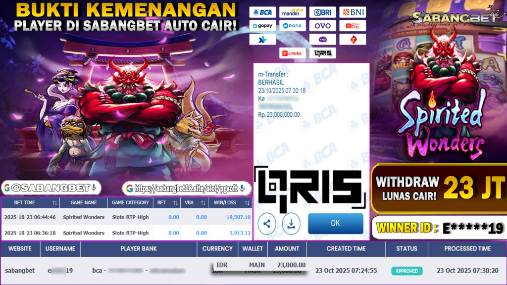 BUKTI KEMENANGAN 23 OKTOBER 2025 DI GAME SPIRITED WONDERS WD 23 JUTA
