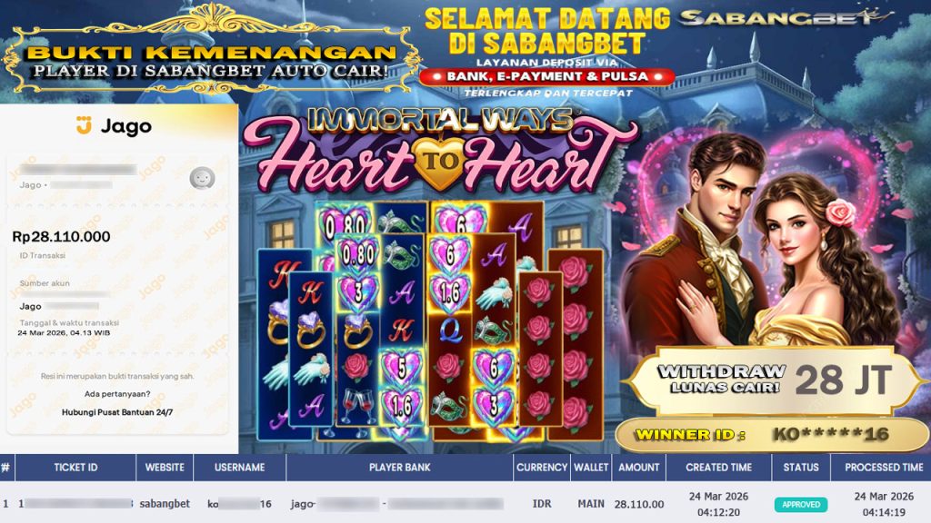 BUKTI KEMENANGAN 24 MARET 2026 DI GAME IMMORTAL WAYS HEART TO HEART WD 28 JUTA