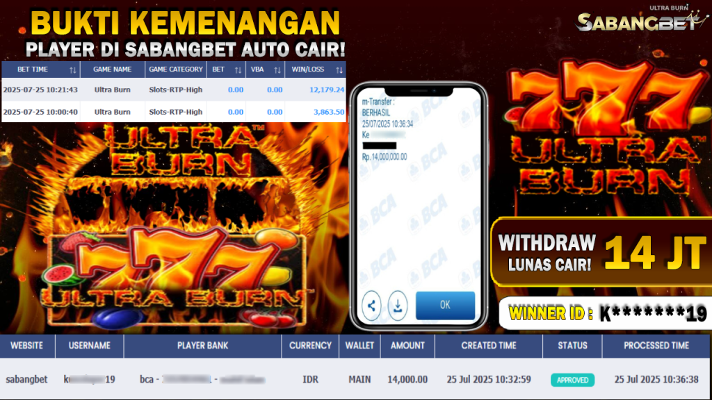BUKTI KEMENANGAN 25 JULI 2025 DI GAME ULTRA BURN WD 14 JUTA