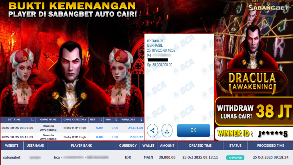 BUKTI KEMENANGAN 25 OKTOBER 2025 DI GAME DRACULA AWAKENING WD 38 JUTA