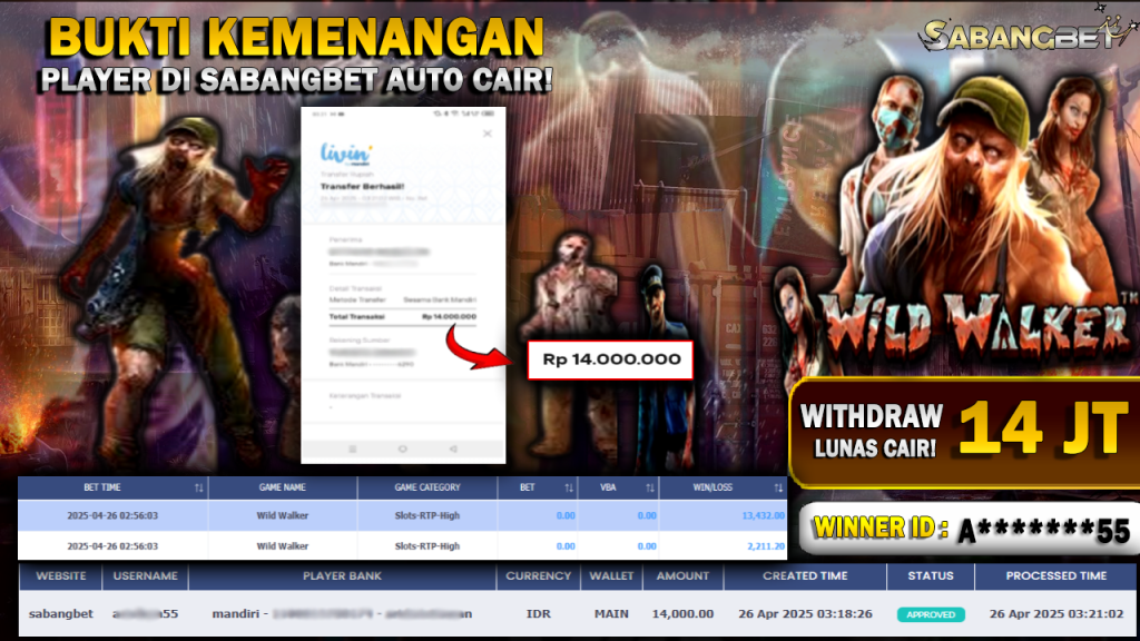 BUKTI KEMENANGAN 26 APRIL 2025 DI GAME WILD WALKER WD 14 JUTA