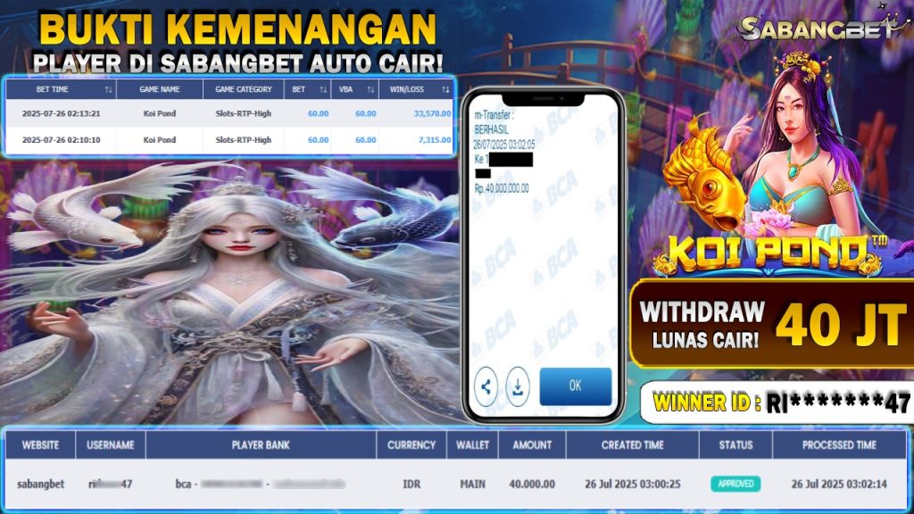 BUKTI KEMENANGAN 26 JULI 2025 DI GAME KOI POND WD 40 JUTA