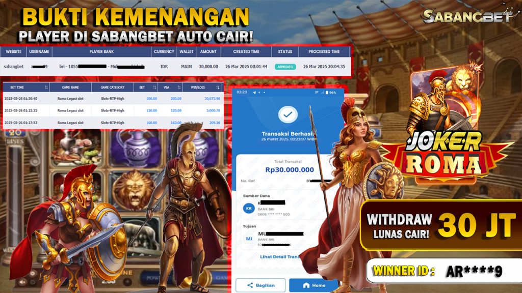 BUKTI KEMENANGAN 26 MARET 2025 DI GAME ROMA LEGACY SLOT WD 30 JUTA