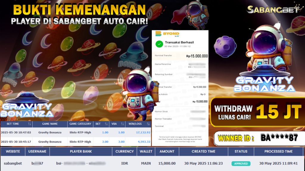 BUKTI KEMENANGAN 30 MEI 2025 DI GAME GARAVITI BONANZA ‘PRAGMATIC PLAY’ WD 15 JUTA