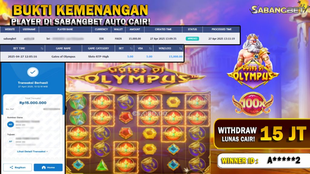 BUKTI KEMENANGAN 27 APRIL 2025 DI GAME GATES OF OLYMPUS  WD 15 JUTA