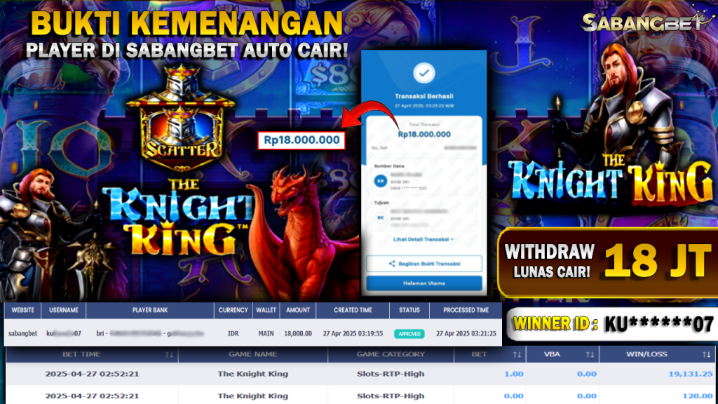 BUKTI KEMENANGAN 27 APRIL 2025 DI GAME THE KNIGHT KING WD 18 JUTA