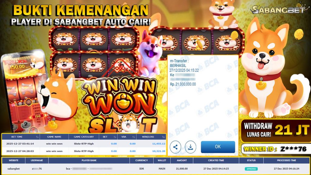 BUKTI KEMENANGAN 27 DESEMBER 2025 DI GAME WIN WIN WON WD 21 JUTA