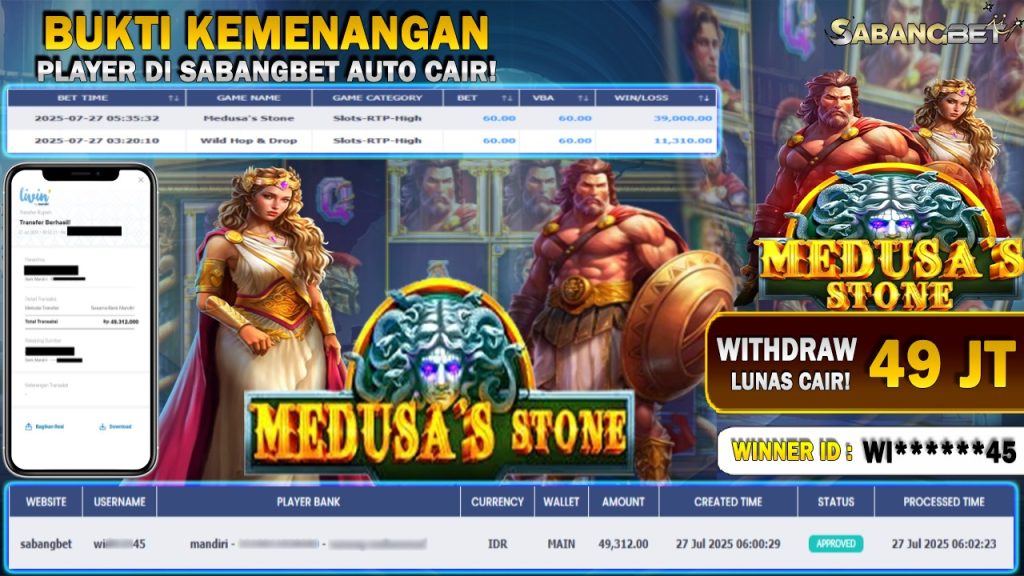 BUKTI KEMENANGAN 27 JULI 2025 DI GAME MEDUSA’S STONE WD 49 JUTA