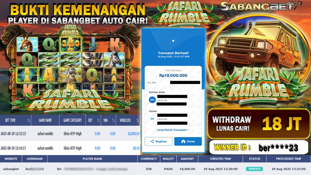 BUKTI KEMENANGAN 29 AGUSTUS 2025 DI GAME SAFARI RUMBLE WD 18 JUTA