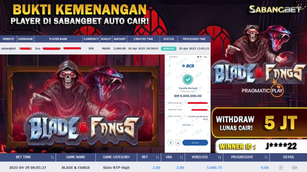 BUKTI KEMENANGAN 29 APRIL 2025 DI GAME BLADE & FANGS WD 5 JUTA