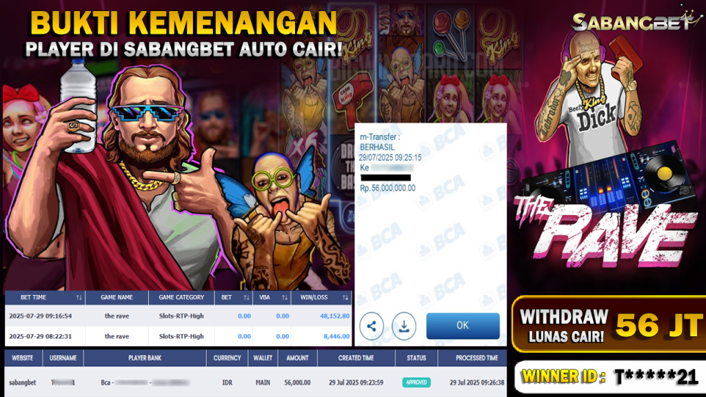 BUKTI KEMENANGAN 29 JULI 2025 DI GAME THE RAVE ( NO LIMIT CITY )WD 56 JUTA