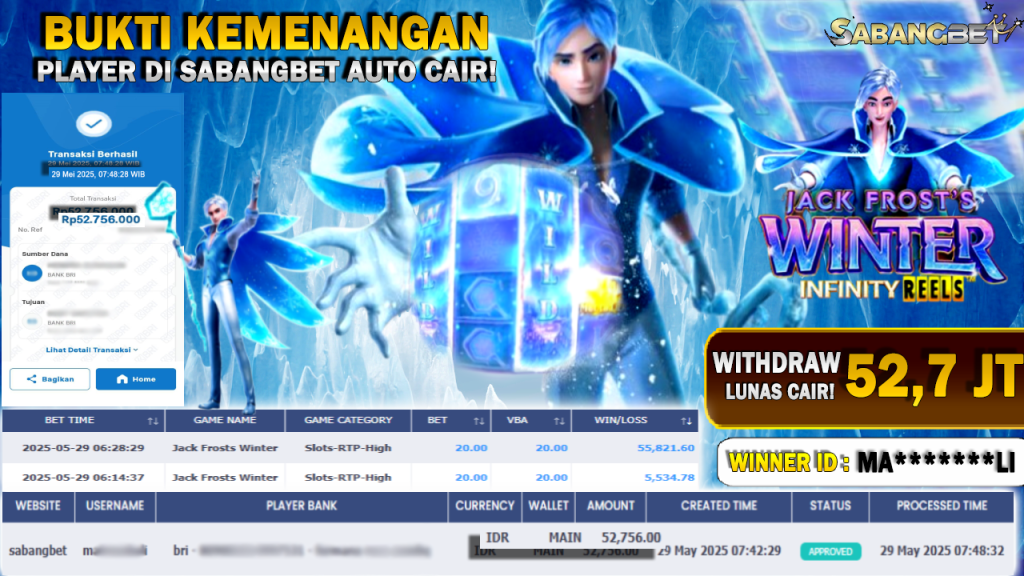 BUKTI KEMENANGAN 29 MEI 2025 DI GAME JACK FROSTS WINTER WD 52,7 JUTA