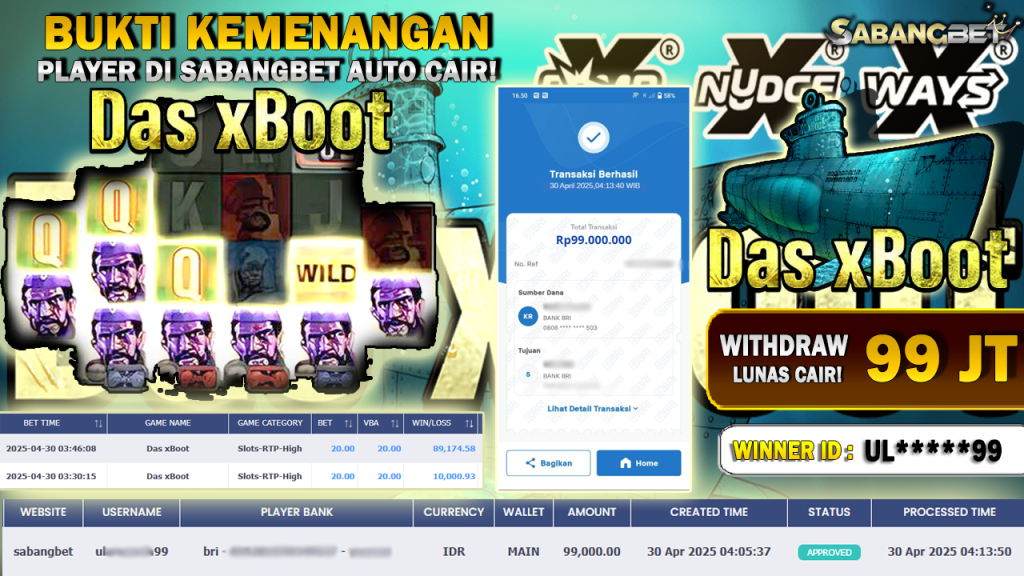 BUKTI KEMENANGAN 30 APRIL 2025 DI GAME Das xBOOT WD 99 JUTA