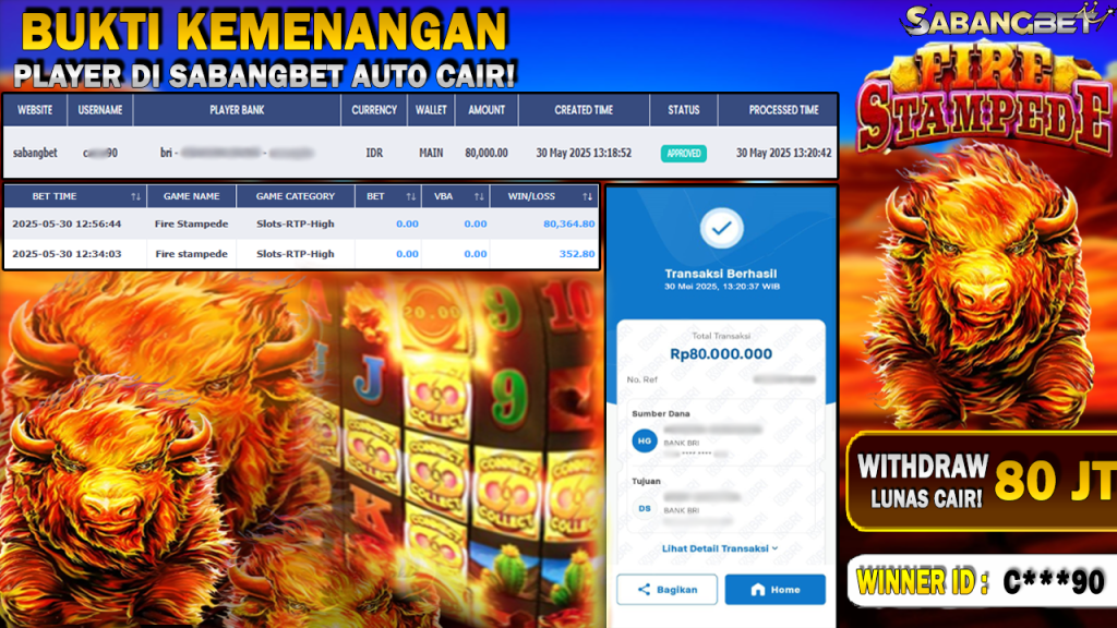 BUKTI KEMENANGAN 30 MEI 2025 DI GAME FIRE STAMPEDE WD 80 JUTA