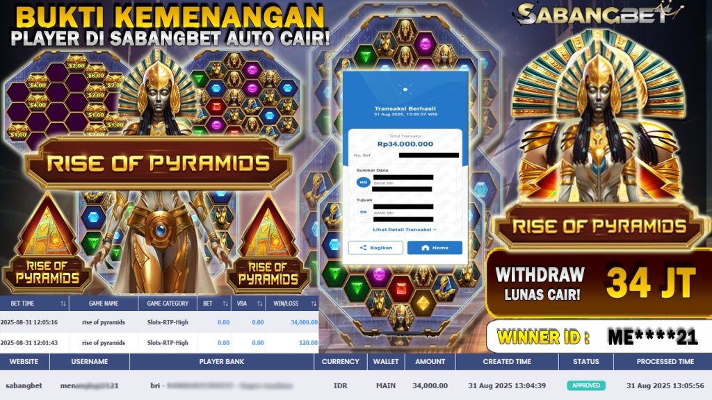 BUKTI KEMENANGAN 31 AGUSTUS 2025 DI GAME RISE OF PYRAMIDS WD 34 JUTA