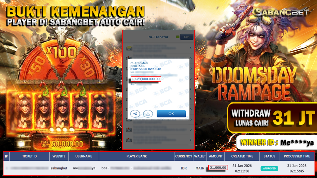 BUKTI KEMENANGAN 31 JANUARI 2026 DI GAME Doomday Rampage WD 31 JUTA