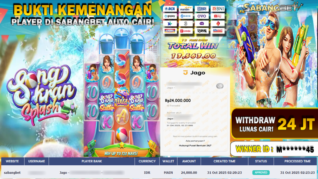 BUKTI KEMENANGAN 31 OKTOBER 2025 DI GAME SONGKRAN SPLASH ( POCKET GAME SOFT ) WD 24 JUTA