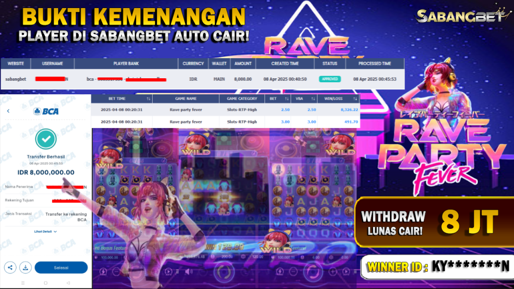 BUKTI KEMENANGAN 8 APRIL 2025 DI GAME RAVE PARTY FEVER WD 8 JUTA