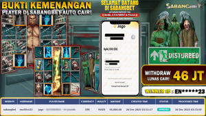 BUKTI KEMENANGAN 26 DESEMBER 2025 DI GAME Disturbed WD 46 JUTA