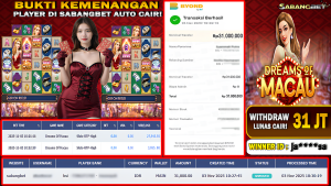 BUKTI KEMENANGAN 03 NOVEMBER 2025 DI GAME DREAMS OF MACAU WD 31 JUTA