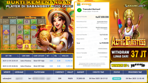 BUKTI KEMENANGAN 04 NOVEMBER 2025 DI GAME AZTEC PRIESTESS WD 37 JUTA