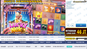 BUKTI KEMENANGAN 03 NOVEMBER 2025 DI GAME LUCKY NEKO WD 46 JUTA