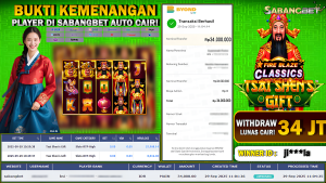 BUKTI KEMENANGAN 29 SEPTEMBER 2025 DI GAME TSAI SHEN’S GIFT WD 34 JUTA