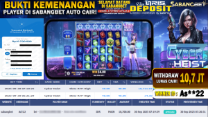 BUKTI KEMENANGAN 30 SEPTEMBER 2025 DI GAME CYBER HEIST WD 10,7 JUTA